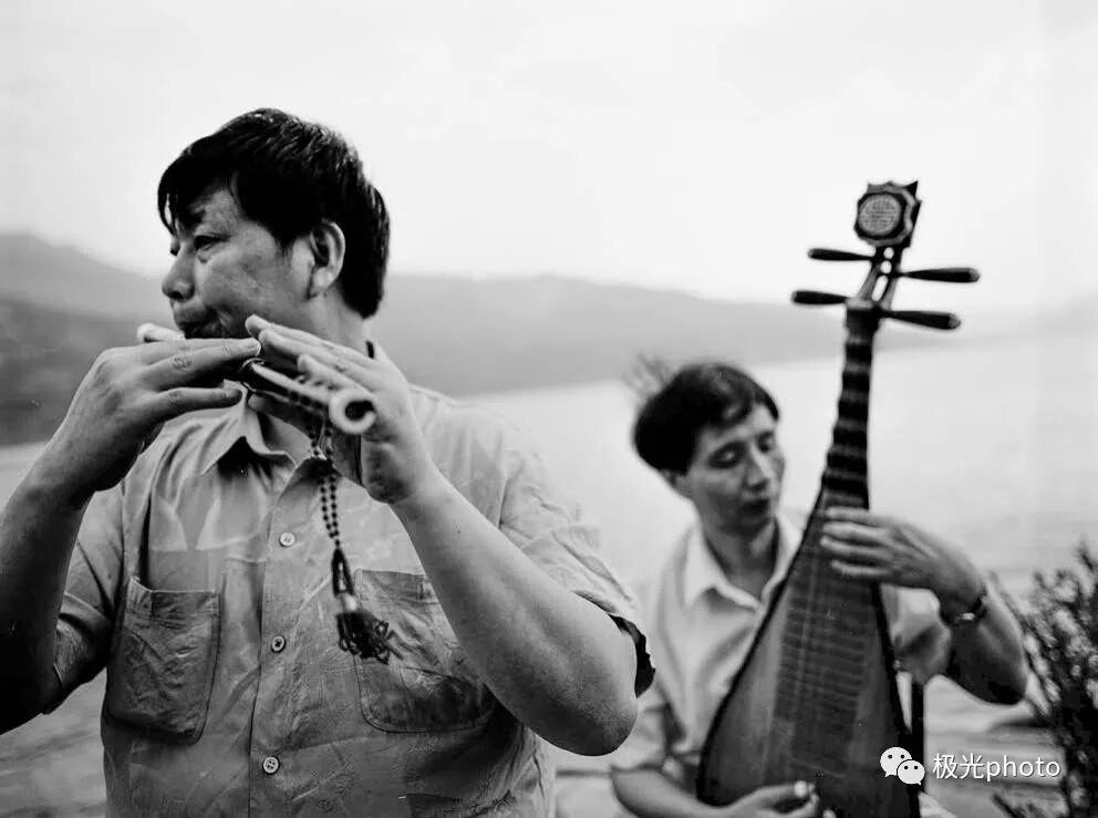 2003 年 6 月 2 日,奉节夔门,为三峡奏乐。后面弹琵琶的是何太愚。