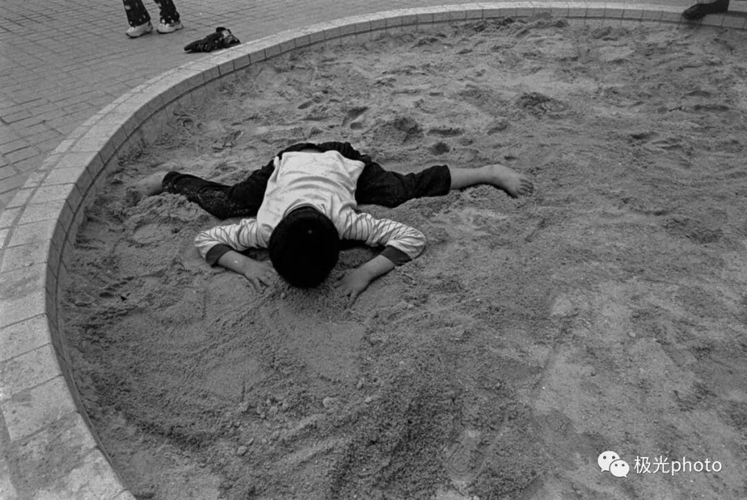 2002 年 10 月 10 日,水井沟巷子,伴随拆迁的击打声,孩子们自制玩具尽情玩耍。