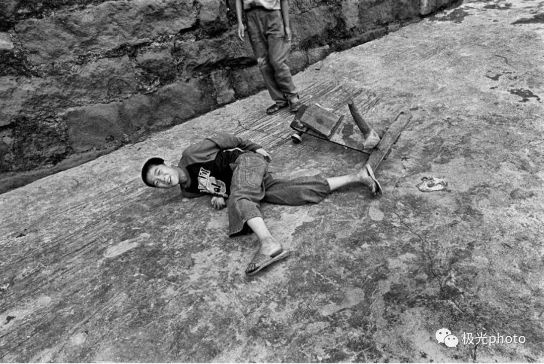2002 年 9 月 17 日,奉节码头,三个嬉戏的孩子。