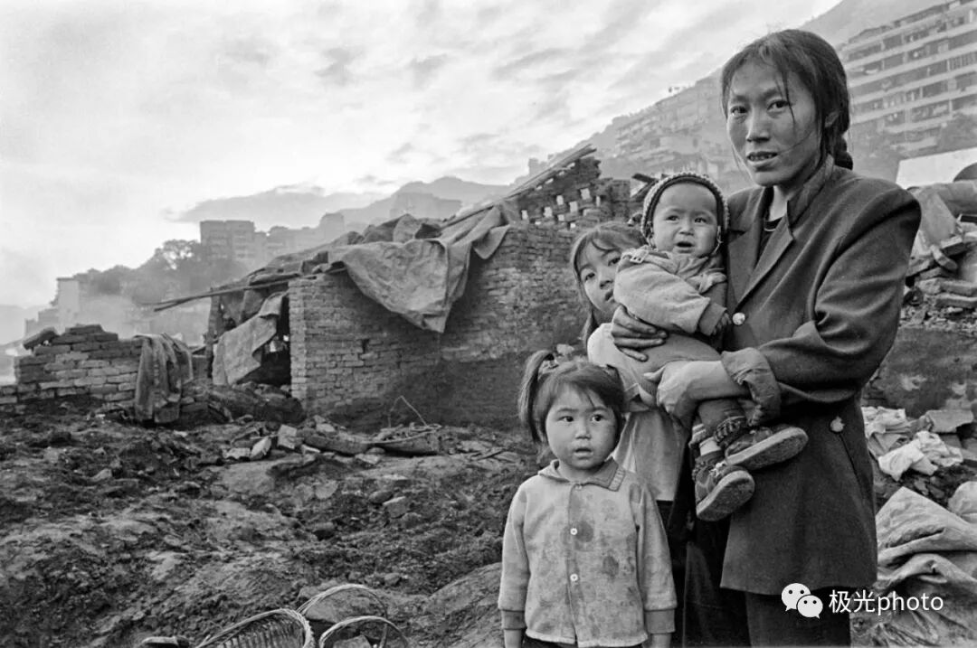 2002 年 5 月 6 日,30 岁的喻兰平带着三个孩子在拆掉的云阳沙湾铁匠铺中“淘”废铁。《三峡》